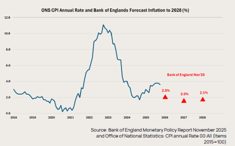 Costs continue to rise across the construction industry, particularly for SMEs, so the announcement to pause the land fill tax reform will be strongly welcomed. This policy reversal should help ease cost pressures in the residential and infrastructure sectors, as cost effective waste management can continue to exist. In addition, the £1.5bn fund to support training will also ease cost pressures and may encourage companies to hire. Overtime, this could eventually alleviate the ongoing labour shortages. This is an ongoing concern with the ONS reporting that the UK construction workforce has decreased to its lowest number in nearly 25 years in 3Q2025 to 2,054,009 workers. However the increase in minimum wage, along with the delay in increasing the National Insurance threshold, will place additional financial strain on the construction industry by increasing their overheads. Furthermore, the introduction of road tax on EVs could significantly impact companies that have transitioned their fleets to EVs/ Hybrids, adding further pressure to their operating costs.